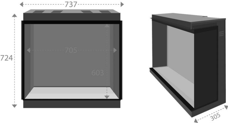 • Veelzijdig Ontwerp: Pas je haard aan aan je voorkeuren met drie verschillende installatieopties: frontaal, tweezijdig of driezijdig. Ongeacht je ruimte, integreert onze haard naadloos in je interieur en voegt een vleugje elegantie en warmte toe.
